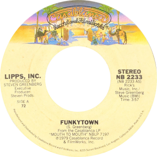 “Funkytown” is a song by American disco–funk group Lipps Inc., written and produced by Steven Greenberg and released by Casablanca Records in March 1980 as the second single from the group’s debut studio album, Mouth to Mouth (1979). The track was met with immediate commercial success, reaching number one on various record charts in different countries including Australia, Belgium, Canada, France, Israel, New Zealand, Spain, West Germany and on the US Billboard Hot 100.[8][9][10] It quickly became the group’s signature song, selling over eight million copies worldwide and becoming their most successful song.[11]