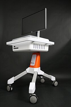 The structure of the device is intended to be disinfected easily and have 360 degrees of movement thanks to its swivel wheels, making them appropriate for transport and hospitals. They also include a lift mechanism that allows the height to be adjusted.[7] Equipped monitors can also be adjusted to be played horizontally or vertically, intended for patients who want to play while lying down on their side.