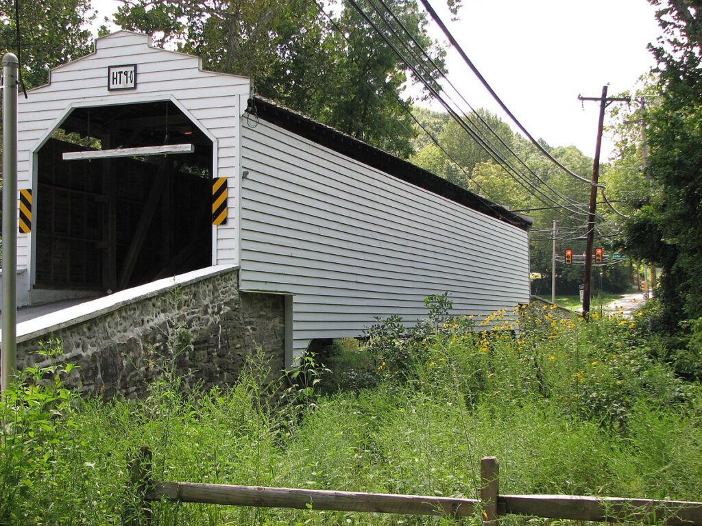 A 78-foot-long (24 m) Burr truss bridge, which was erected in 1872, this historic structure features stepped portals and horizontal clapboard siding, and crosses the East Branch Brandywine Creek.[2]