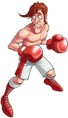 | alt = Drawing of a skinny shirtless man with red hair, red boxing gloves, and white-and-red shorts and shoes. He is looking to the left and appears worried.