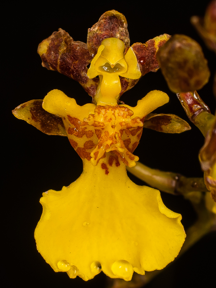Gomesa hydrophila is a species of orchid found from Brazil to Paraguay.[1] This species is an epiphyte primarily growing in wetlands.[2] Below ground, this orchid has pseudobulbs which store starches used to support growth. [3] Above ground, the plant has strap-like leaves and blooms in late spring or early summer. The blooms are paniculate on stems which have many flowers. The stems may be held up by surrounding vegetation or erect.[4]