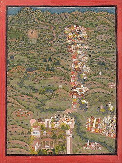 [[File:Indian – Maharana Sangram II visiting Gosain Nilakanthaji after a tiger hunt – Google Art Project.jpg|thumb|[[Sangram Singh II|Maharana Sangram Singh II]] of [[Kingdom of Mewar|Mewar]] visiting Gosain Nilakanthaji after a tiger hunt. (c.1725)]]