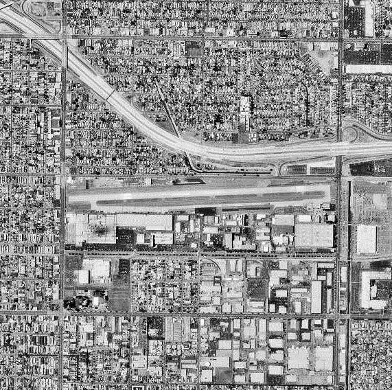 The airport covers 80 acres (32 ha); its one runway, 7/25, is 4,884 ft × 100 ft (1,489 m × 30 m) concrete. It is effectively crammed into a very small space and is surrounded by residential areas on all sides. The airport is also in very close proximity to the considerably larger Los Angeles International Airport, so special consideration must be given attention to avoid encroaching on the LAX airspace.
