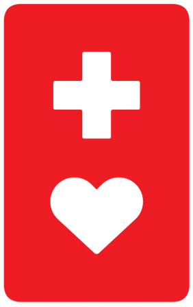 a white heart below a white cross on a red rounded rectangle