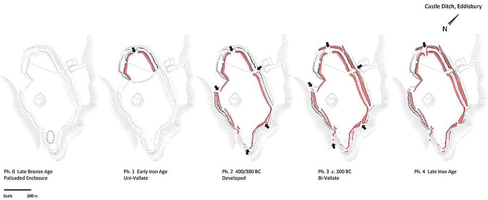 Taking a similar stance, archaeologist Niall Sharples noted that “It is clear from [my] analysis of the sequence [of construction] at Maiden Castle, and by comparison with other sites, such as Danebury, that hillforts do not have a single function. A variety of different activities can be associated with these sites and with time the importance or perhaps the emphasis of certain activities changed dramatically.”[22]