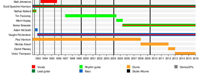 *Vaughn Richardson – vocals, distorted bass (1992–present)