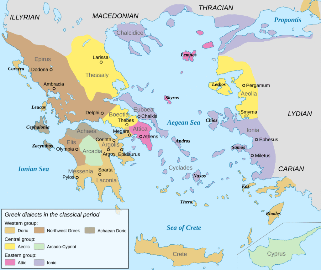 In the same period as Dorian invasion of the Peloponnese, other groups groups were migrating as well. The Thessalians, moved from Thesprotia into the area of Thessaly, displacing the earlier Aeolophone tribe who had inhabited that area.