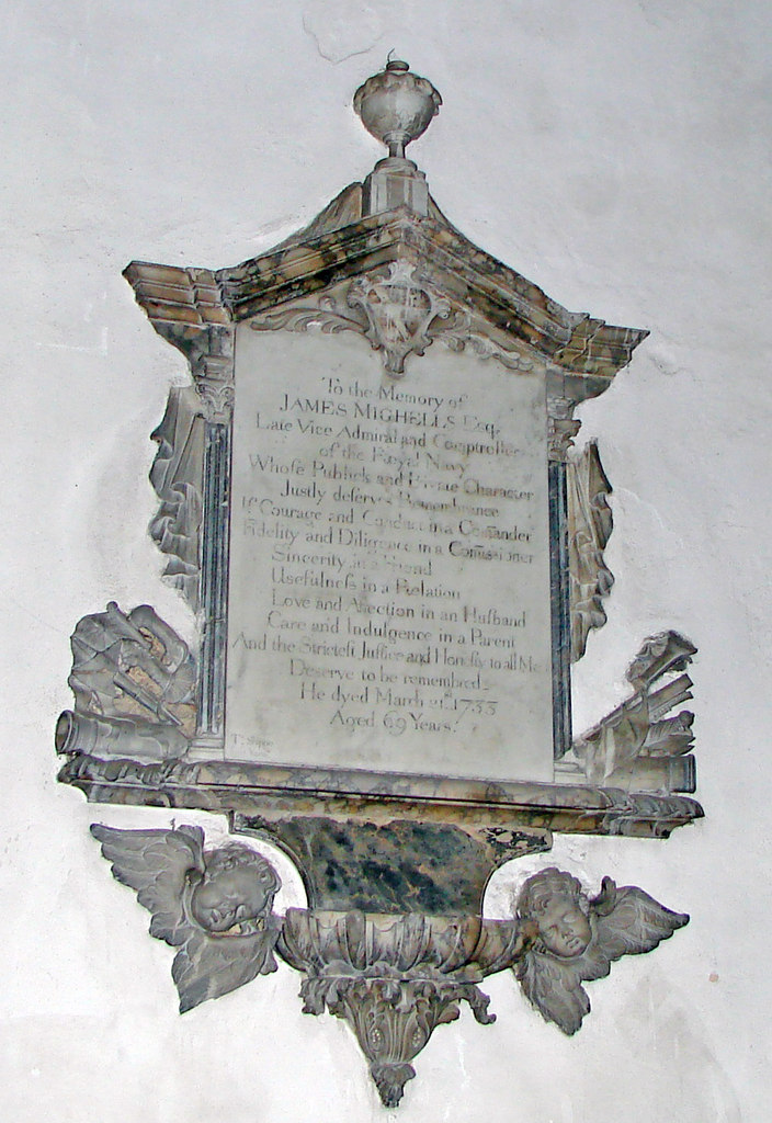 Vice-Admiral James Mighells (died 21 March 1734) was a Royal Navy officer who became Comptroller of the Navy.