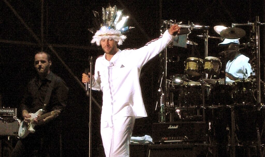 Jamiroquai are a British funk and acid jazz band formed in 1992. Fronted by lead singer Jay Kay, Jamiroquai were initially the most prominent component in the early 1990s London-based acid jazz movement. Subsequent albums have explored other musical directions such as pop, rock, disco and electronica. Their best-known track is “Virtual Insanity“, which won four awards at the 1997 MTV Video Music Awards. Jamiroquai have sold more than 26 million albums worldwide and won a Grammy Award in 1998.[1]