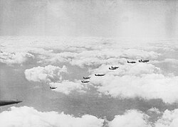 Hawker Hurricanes of No. 242 Squadron, flying over England in October 1940
