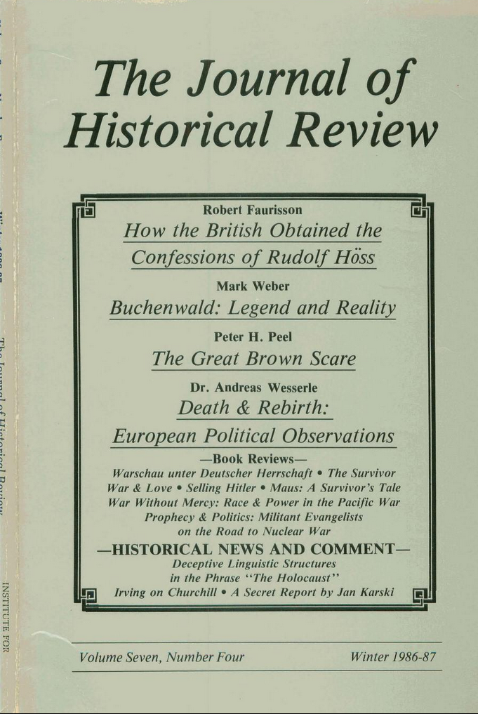 - ^ “Journal of Historical Review by Volume”. IHR. Institute for Historical Review. Archived from the original on 4 July 2010. Retrieved 28 June 2023.