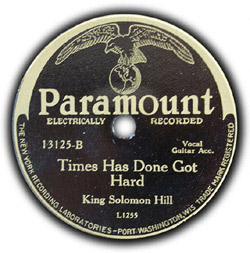 A pressing of “Times Has Done Got Hard” by Paramount Records, 1932; the A-side was “My Buddy Blind Papa Lemon”