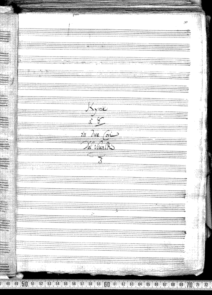 RV 587 is divided into three movements. The first movement begins with an orchestral interlude based on a modified version of the first movement of the composer’s Magnificat. The chorus is adorned with descending quavers in the orchestra. The second movement is a duet between cori and for two soprani in each cori. The final movement unites the two cori with a brief grave and enters a fugue. The fugue would later be reworked for the composer’s Concerto Madrigalesco (RV 129).