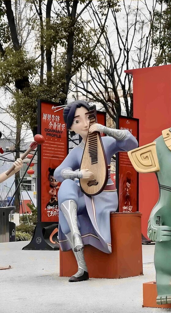 She would always be known to reflect many acts of kindness to her third son—no matter what he truly did. Thus, Lady Yin would be seen protecting Nezha at many times throughout the novel, even when he performed horrendous actions such as the killing of Ao Guang‘s third son, Ao Bing. After Nezha had given his own body as a sacrifice to Ao Guang in order to protect his family, Lady Yin would end up erecting a temple atop the Green Screen Hill as a stationing area for Nezha’s spirit (this was because Nezha continuously pleaded to her in her sleep). According to legend, the temple built atop the hill by Lady Yin, now known as Nezha Palace, is located on Cuiping Mountain in Yibin City, Sichuan Province. It is recognized as the only Nezha ancestral temple in China.[5]