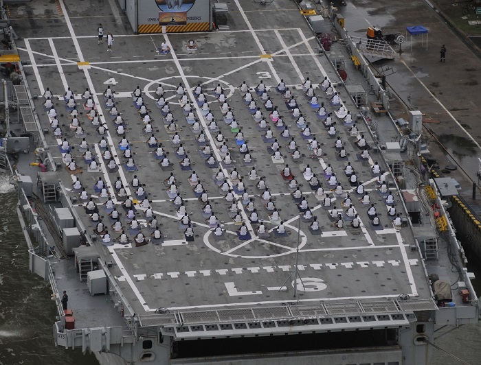 Apart from India, the event was celebrated across the world including New York, Paris, Beijing, Bangkok, Kuala Lumpur, San Francisco, Seoul, and Seychelles.[5] In San Francisco, 5,000 participants gathered in the Marina Green park to do yoga.[6] Another record was created by India’s NCC cadets, who entered the Limca Book of Records for the “largest yoga performance simultaneously by a single uniformed youth organization” at multiple venues.[7]