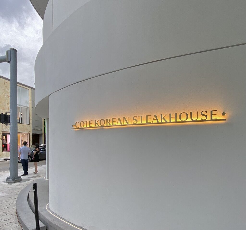 [[File:꽃 (Cote), Design District, Miami, Florida.jpg|alt=Facade of COTE Steakhouse restaurant in Miami|thumb|꽃 COTE Korean Steakhouse, a Michelin-starred restaurant in Miami, Florida]]