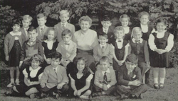 Kew-Forest School 1953 Forest Hills, New York Trump (third person in the third row) in his 1st grade class at Kew-Forest School.[1]