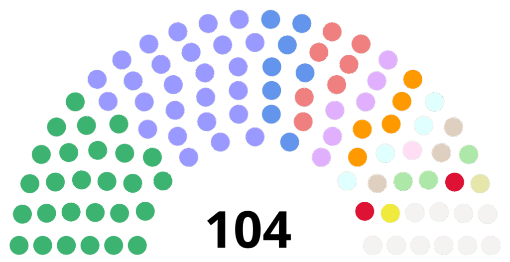 | style=”background:#e0b0ff;”| || [[Awami National Party|ANP]] || style=”text-align: center”| ”’6”’ || style=”background:#e6e6aa;”| || [[ )|]]|| style=”text-align: center”| ”’1”’