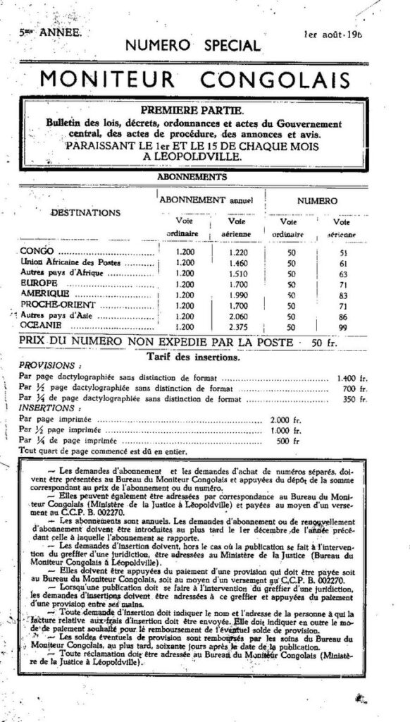 The Luluabourg Constitution, published in Moniteur Congolais