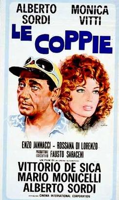 Man and Wife (Italian: Le coppie, lit. ‘The Couples‘) is a 1970 Italian comedy film directed by Mario Monicelli, Alberto Sordi and Vittorio De Sica. It consists of three segments.[1][2][3]
