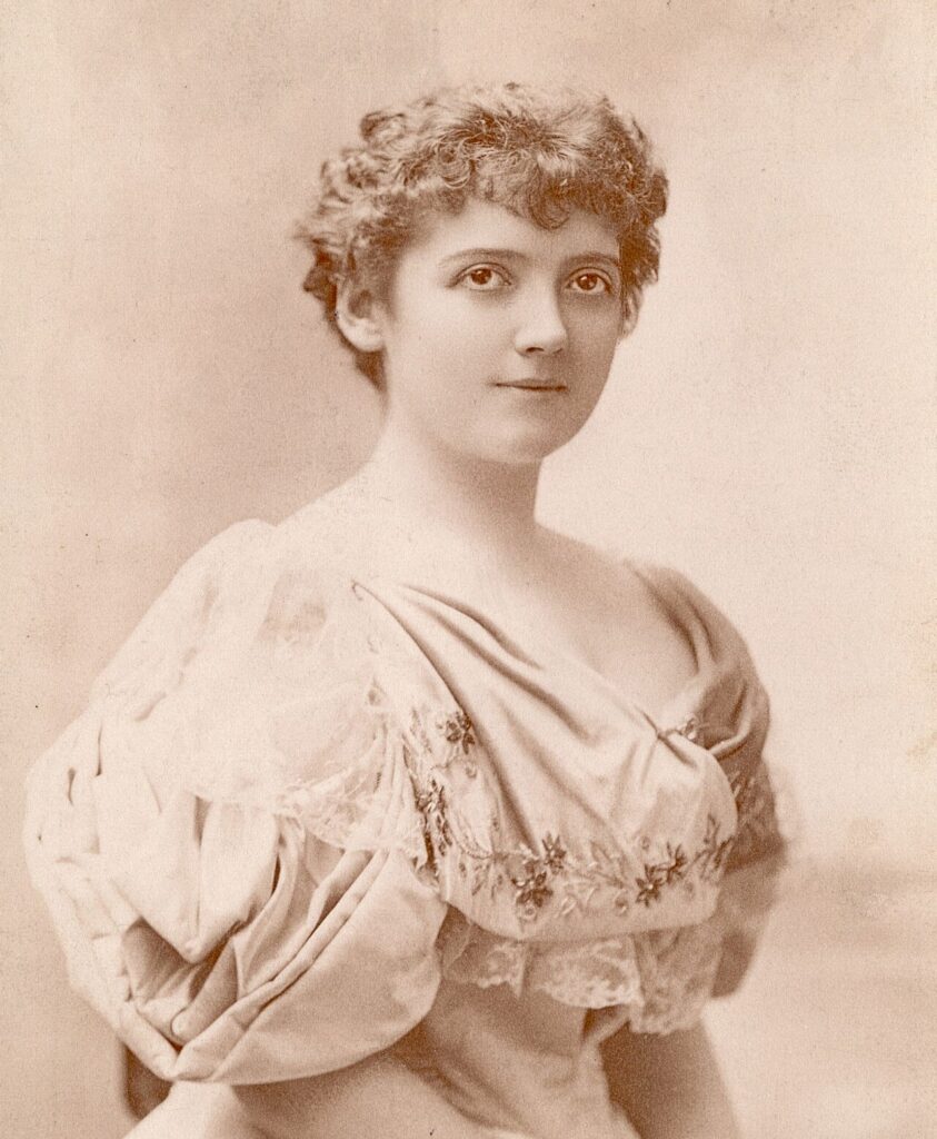 She debuted at the Metropolitan Opera in 1895, appearing as Micaëla in Bizet’s Carmen and Baucis in Gounod’s Philémon et Baucis.[13] Under director Maurice Grau, Engle performed in three grand opera productions in the winter of 1898 at Chicago’s Auditorium Theatre: as Cherubino, Lady Harriet Durham in an Italian version of Flotow’s Martha, and the Queen in Les Huguenots.[14]