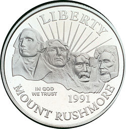 Obverse of the 1991 Mount Rushmore Anniversary coin, designed by Somogyi