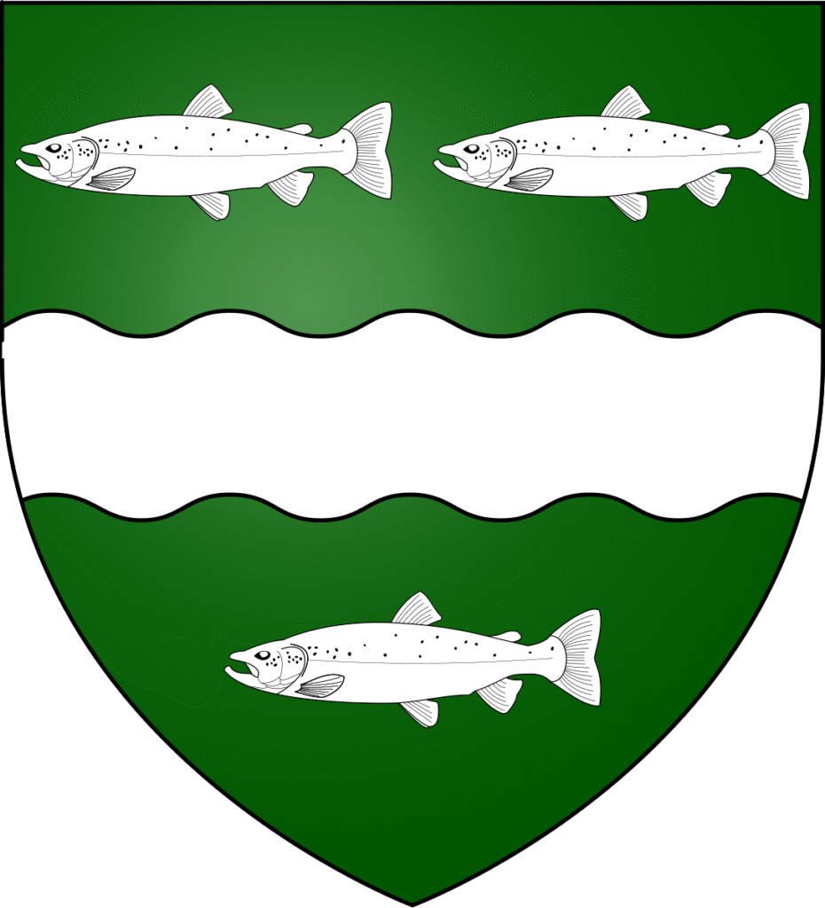 According to a genealogy which purports to date from the 17th century, Alexander MacCabe (fl.1689) was a descendant of the last chieftains of the MacCabes. Within the genealogy, his arms are blazoned: vert a fesse wavy between three salmons naiant argent; crest a demi-griffon segreant; motto aut vincere aut mori.,[1]