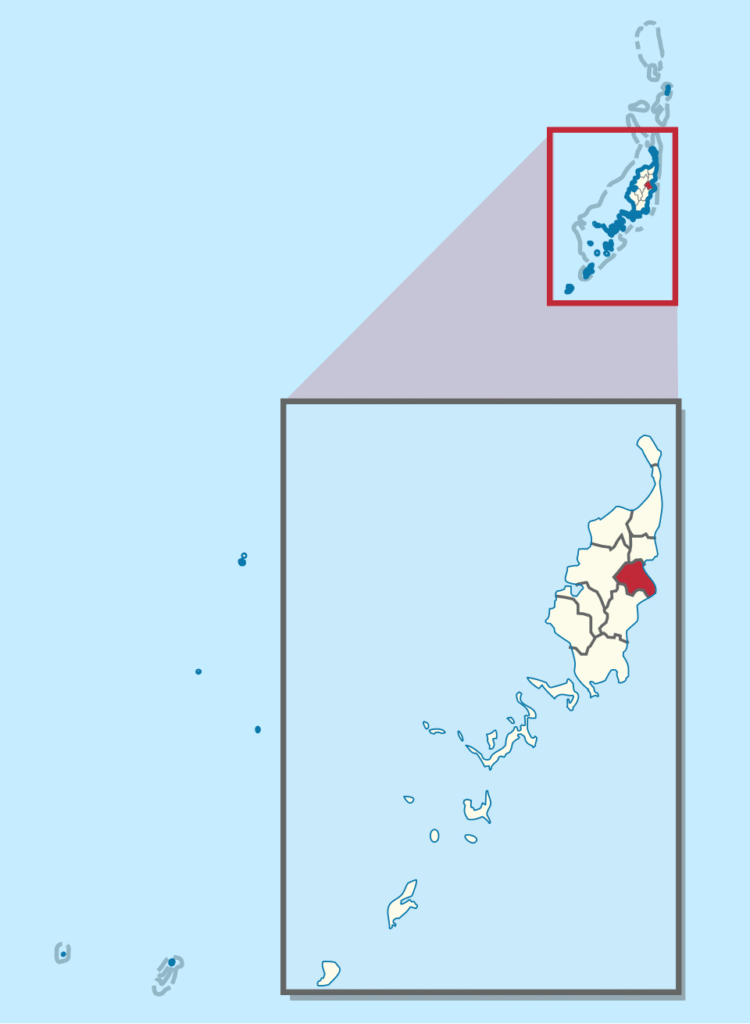 Melekeok, located on the central east coast of Babeldaob, includes long stretches of sandy beaches and the broad Ngerdorch River valley which begins at Lake Ngerdok, the largest fresh water lake in Palau. Melekeok extends from the lagoon on the east coast to the Rael Kedam, the central divide on Babeldaob Island, and situated between Ngiwal on the north and by Ngchesar on the south. To the west, Melekeok is bounded by Ngeremlengui. The interior of the state is composed of steeply dissected rolling hills with swampy marshes lining sluggish drainages. Thick forests cover the east flanks of the Rael Kedam, and the sandy beaches are lined with coconut palms, but much of the interior is covered with sparse vegetation. A thin fringe of mangroves emerges along the northern and southern stretches of coast, but is lacking for most of the central coast. A ridge system parallels the coast and the prominent Tochobei Hill is situated near the center of this system. A series of small ridges descend like fingers from the main ridge system to the coast.[4] Melekeok State is approximately 11 square miles (28 km2) in total area.