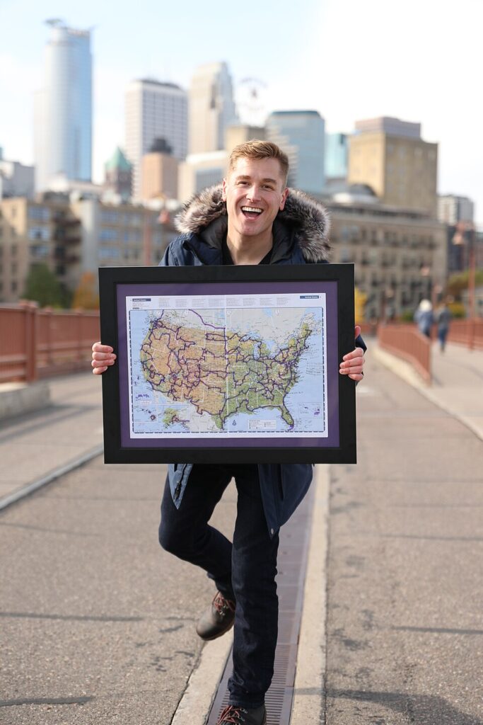 [[File:MikahMeyerWithMapOriginal.jpg|alt=Mikah Meyer is seen with his map from visiting all 400+ National Park Service sites, standing on the Stone Arch Bridge in Minneapolis, Minnesota.|center|frame|Mikah Meyer with his map from visiting all 400+ United States National Park Service sites]] |