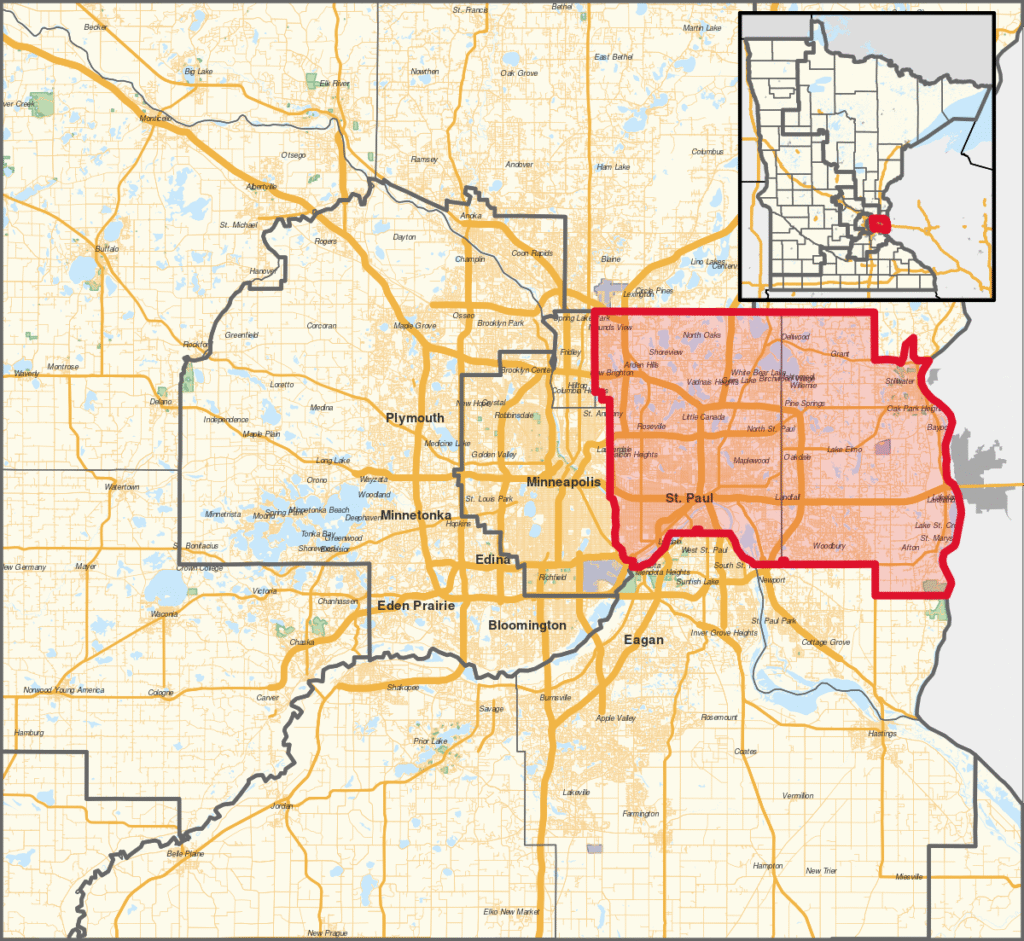 - Arden Hills, Blaine, Falcon Heights, Gem Lake, Lauderdale, Little Canada, Maplewood, Mounds View, New Brighton, North Oaks, North St. Paul, Roseville, Saint Paul, Shoreview, Spring Lake Park (part; also 5th; shared with Anoka County), Vadnais Heights, White Bear Lake, White Bear Township