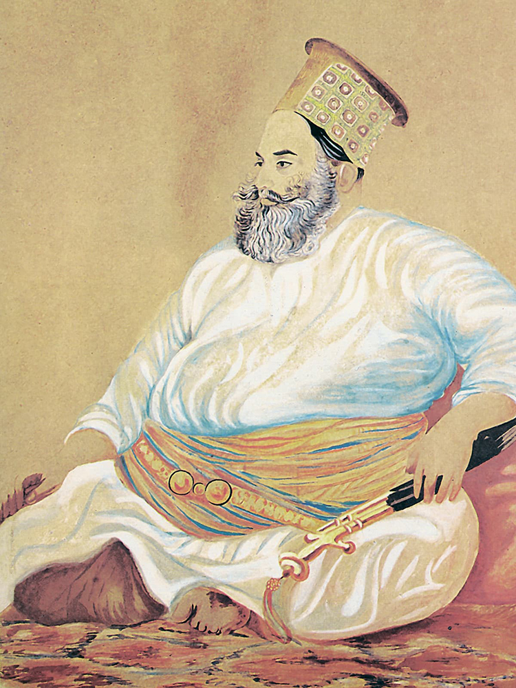 Portrait of Mir Hassan Ali Khan on the book cover of Fatehnama-e-Sindh