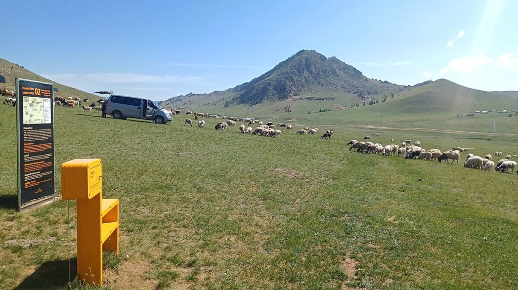 The Mongol Olle Trail incorporates elements of the Jeju Olle Trail in Jeju Island, South Korea, alongside Mongolia landscapes, cultural sites, and nomadic traditions.[5] It is marked using blue and yellow ribbons and “Ganse” pony-shaped symbols. This trail represents the second international expansion of the Jeju Olle Trail’s “Sister Trail” network,[6] following existing trails in Kyushu and Miyagi, Japan. Developed by the Jeju Olle Foundation[7] in collaboration with the Ulaanbaatar Tourism Authority in Ulaanbaatar City, the trail references a historical connection of 800 years between Jeju Island and Mongolia. This cultural exchange project aims to support sustainable tourism and provide visitors with hiking experiences that reflect Mongolian culture.