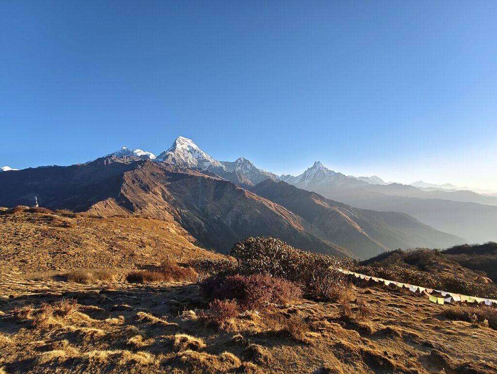 Mulde View Park (मुल्दे पार्क) is a hill station to see one of the best sunrise and sunset view of Annapurna Massif range and Dhaulagiri mountain range, located on border of Myagdi District and Kaski District in Gandaki Province of Nepal. This viewpoint is the best alternative for the trekkers who want to avoid the crowded Ghorepani Poon Hill trek. The trek starts from the Ghandruk through the Tadapani village to Dobato. the nest day early in the morning you can go to Mulde View Park to see the Majestic views of very high mountains peaks such as an Annapurna 8,091m, Dhaulagiri 8,127, Annapurna South 7,219 Meter, Machhapuchhare 6,993 Meter, Himchuli, Annapurna III, Dhampus peak, Dhulagiri II, and many other peaks.[1] The recent road constructions till Ghorepani has diverert the attention of the trekkers to Mulde view park as the best alternatives of the Poon Hill.[2]