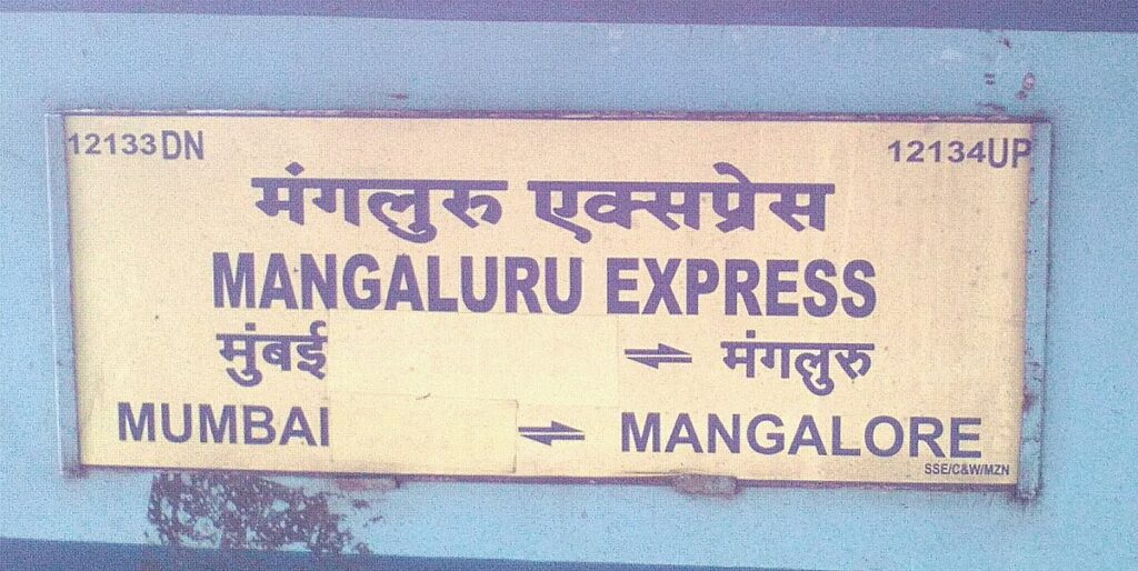Nameboard of Mumbai CSMT–Mangalore Jn. SF Express |