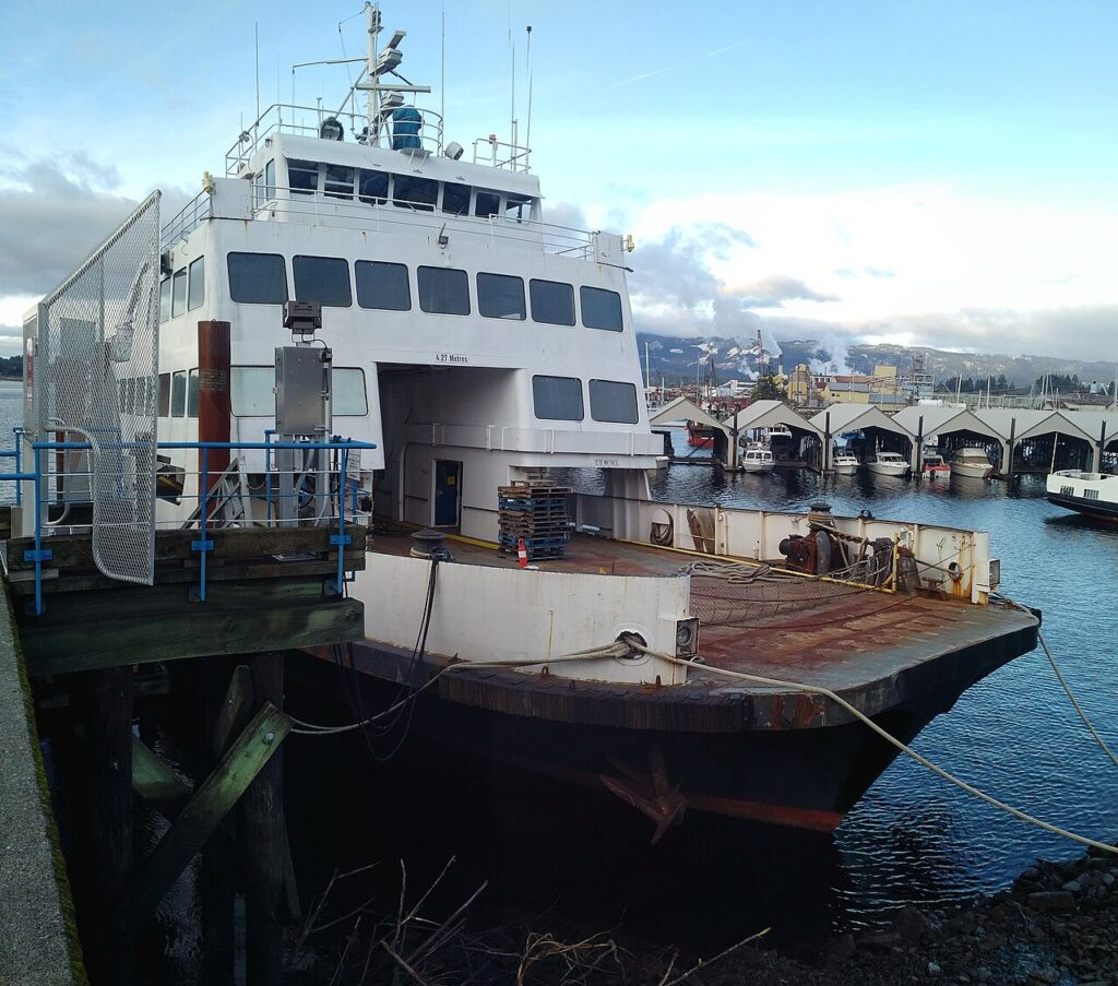 The MV Tenaka is a ferry previously owned by BC Ferries. She was built for BC’s Ministry of Transportation and Highways in 1964 in Victoria, British Columbia by the Victoria Machinery Depot. Originally named the Comox Queen, she was renamed Tenaka in 1977 and became part of BC Ferries’ fleet in 1985 when the Ministry of Transportation’s saltwater ferries and routes were transferred to BC Ferries.[1] As of April 2016, the Tenaka was sold to Lady Rose Marine Services, a tourism company operating out of Port Alberni, British Columbia.[2]