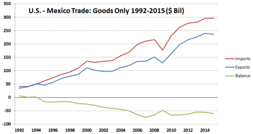 - ^ a b U.S. Census Bureau-Trade in Goods with Mexico-Retrieved August 10, 2016