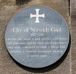 [[File:Plaque commemorating the site of Norwich Gaol – geograph.org.uk – 5808019.jpg|thumb|A plaque commemorating Norwich City Gaol, now the site of the Roman Catholic cathedral. {{Open Plaques|plaqueid=8149}}.]]