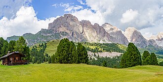 The highest peaks in the chain are Sass Rigais and Furchetta, both at 3,025 meters.