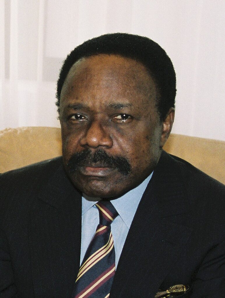 In addition to the presidency, Bongo held several ministerial portfolios from 1967 onward, including Minister of National Defense (1965–1981),[18] Information (1967–1980), Planning (1967–1977), Prime Minister (1967–1975), the Interior (1967–1970), and many others. Following a Congress of the PDG in January 1979 and the December 1979 elections, Bongo gave up some of his ministerial portfolios[19] and surrendered his functions as head of government to Prime Minister Mebiame. The PDG congress had criticized Bongo’s administration for inefficiency and called for an end to the holding of multiple offices. Bongo was again re-elected for a seven-year term in 1979, receiving 99.96% of the popular vote.[19] In the autumn of that same year, Robert Luong, a lover of Bongo’s wife, was assassinated by barbouze mercenaries in Villeneuve-sur-Lot, France.[10][5]