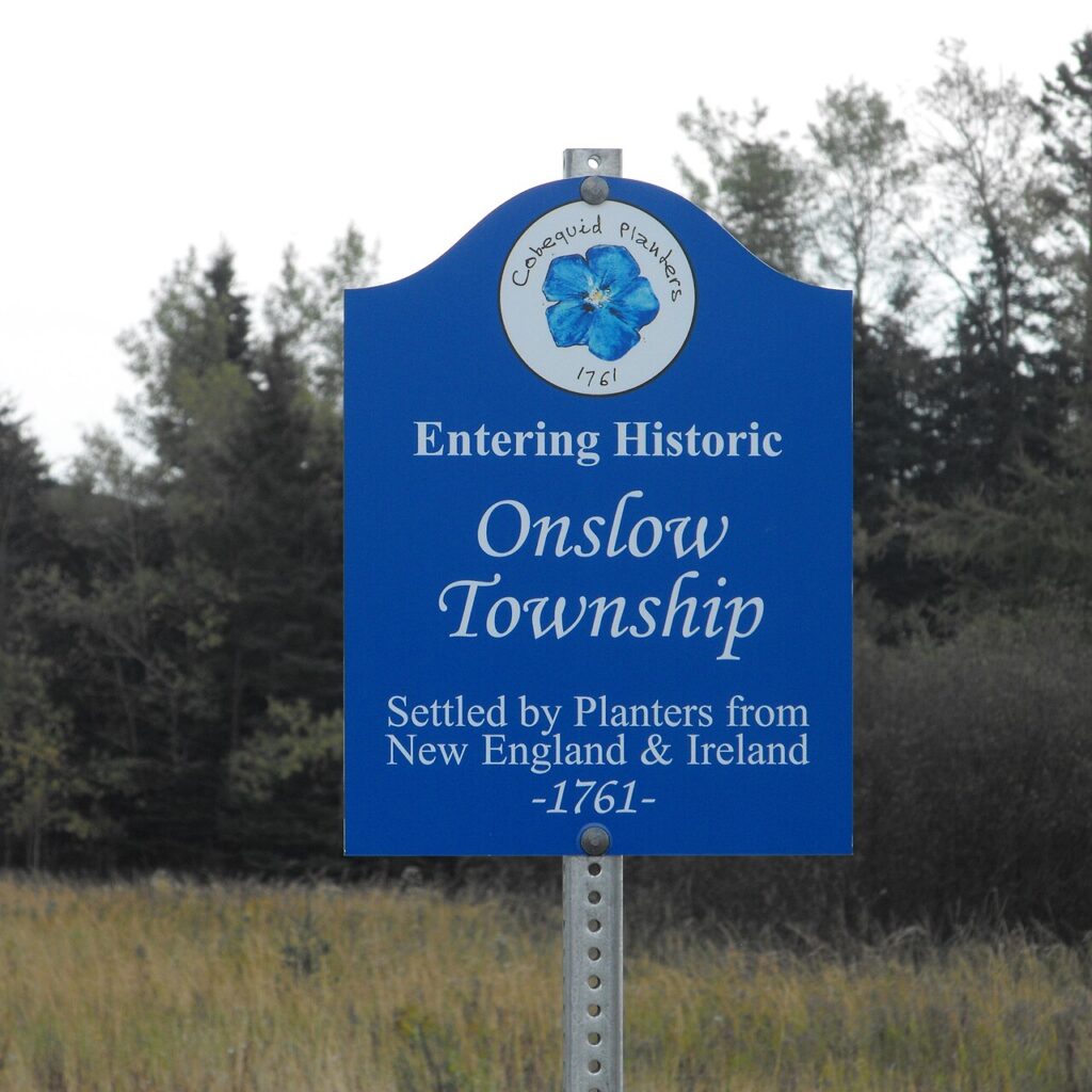* [https://memoryns.ca/onslow-township-1769 Onslow Township, 1769] Map of Onlsow Township, Colchester County, NS. Original grant issued Feb. 21, 1769. Traced by Gerald Byers, 1976. Shows names and lots of original grantees. |