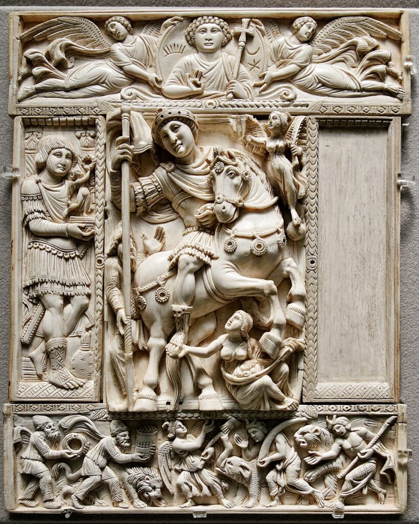 Line 2: Line 2: [[File:Diptych Barberini Louvre OA9063 whole.jpg|thumb|The [[Barberini ivory]], a late [[Leonid dynasty|Leonid]]/[[Justinian dynasty|Justinian]] [[Byzantine Empire|Byzantine]] [[ivory
