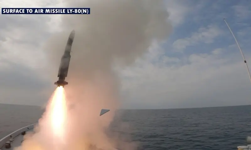 “The exercise included the successful live firing of LY-80 (N) surface-to-air-missile from a vertical launching system at an extended range, validating the long-range capabilities of Pakistan Navy’s modern air defence systems,” said ISPR.