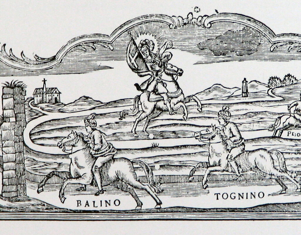 Documents kept in Asti’s archives at the Palazzo Mazzola record that the expenditure incurred for the race was two palii (the plural of palio): one offered to the church of San Secondo, the other given to the winner. This is significant, because it reveals the degree of religious devotion that once accompanied the event.