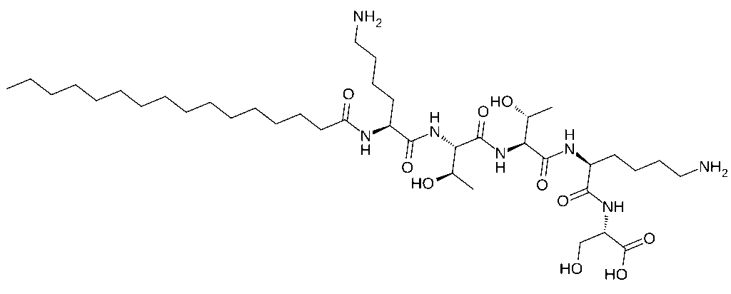 Palmitoyl pentapeptide-4 (Pal-Lys-Thr-Thr-Lys-Ser = Pal-KTTKS) contains 5 amino acids linked to a 16-carbon aliphatic chain for improving the penetration of the molecule through the lipid structures of the skin. It is a matrikine.[1] A number of similar molecules are known.[2][3][4][5]