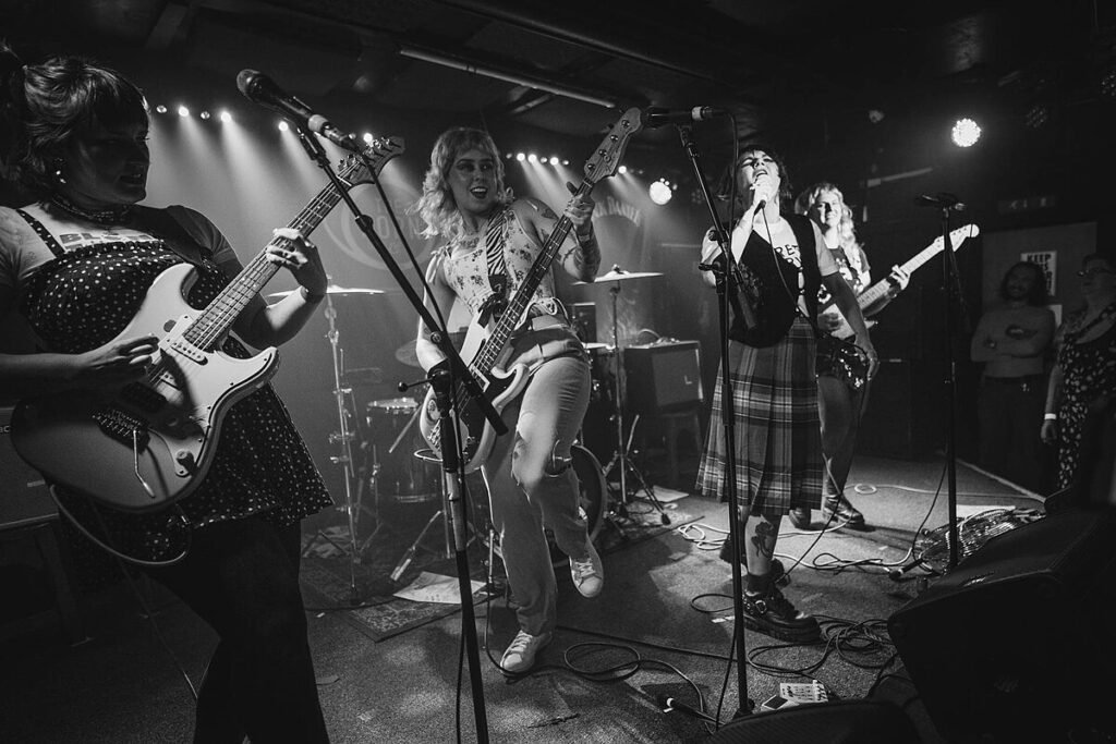 ”’Panic Shack”’ are a band, formed in 2018 in [[Cardiff]].<ref>{{Cite web |title=Spotlight: Panic Shack |url=https://www.prsformusic.com/m-magazine/new-music/spotlight-panic-shack |access-date=2023-07-30 |website=www.prsformusic.com |archive-date=30 July 2023 |archive-url=https://web.archive.org/web/20230730223003/https://www.prsformusic.com/m-magazine/new-music/spotlight-panic-shack |url-status=dead }}</ref> The band consists of Sarah Harvey (lead vocals), Meg Fretwell (guitar, backing vocals), Romi Lawrence (guitar, backing vocals), Emily Smith (bass) and accompanied by Nick Doherty-Williams on drums.<ref>{{Cite web |date=2023-02-18 |title=On tour with Panic Shack – London, Tunbridge Wells & Brighton |url=https://www.brightonandhovenews.org/2023/02/18/on-tour-with-panic-shack-london-tunbridge-wells-brighton/ |access-date=2023-07-30 |website=www.brightonandhovenews.org}}</ref><ref>{{Cite web |title=Panic Shack {{!}} Fred Perry UK |url=https://www.fredperry.com/subculture/articles/panic-shack |access-date=2024-01-29 |website=www.fredperry.com |language=en}}</ref> |