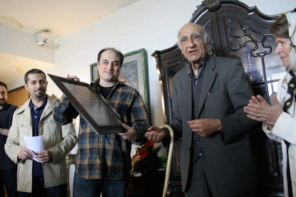 [[File:5th-Omid-Prize-03.jpg|thumb|Parviz Barati received the Omid Journalism Prize in 2013 in memory of Dr. Mehdi Samsar for his distinguished role in art journalism. The award was presented to him by Iranian historian Dr.Mohammad Ebrahim Bastani Parizi in The house of the late Dr.Semsar. In this photo, Guity Elahi (Semsar), wife of Dr. Samsar, is on the right, and on the left Hadi Heydari, a prominent Iranian cartoonist, are also seen.]]