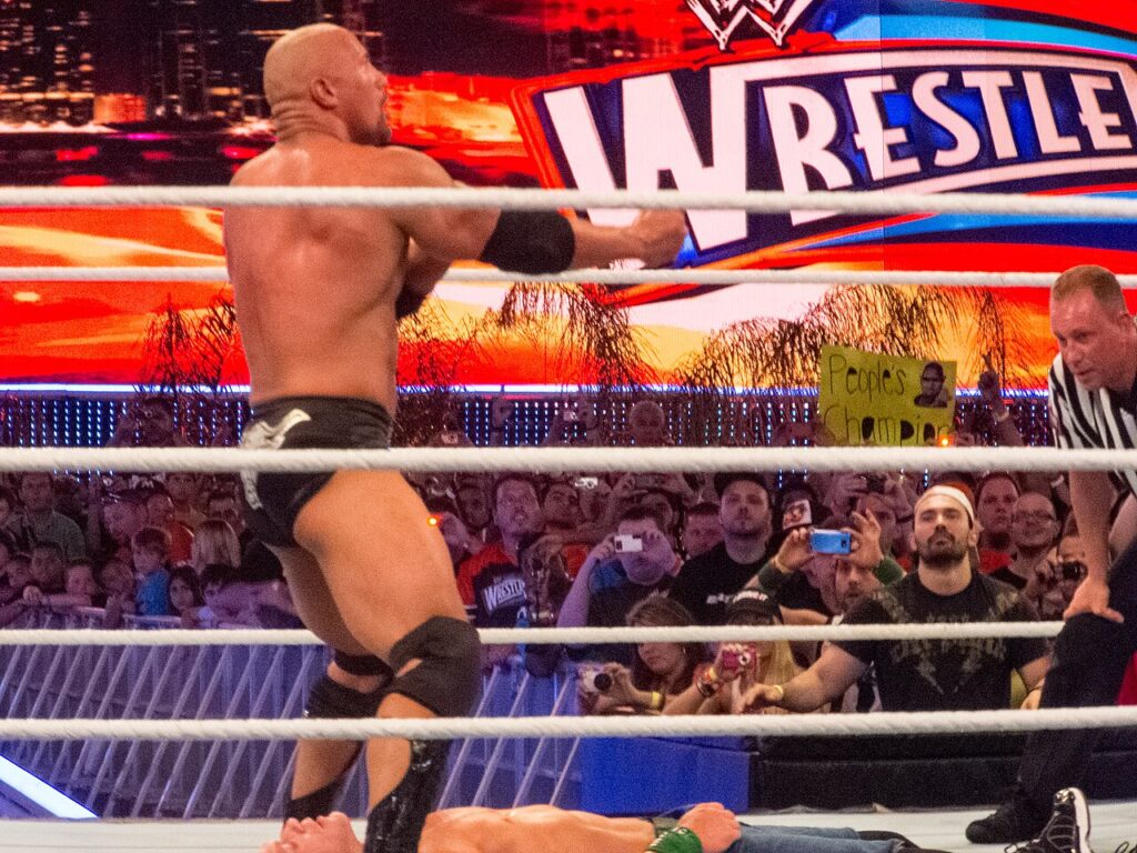 The Rock performed the People’s Elbow on John Cena at WrestleMania 28.