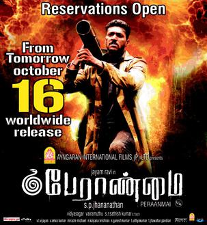 Bhama Devi Ravi of The Times of India wrote, “if you are one of those passionate followers of Tamil cinema, and get all twitchy and charged up over the sameness in formula-driven action films and have been demanding at least a fresh storyline as a minimum requirement to escape a sense of deja vu, you can relax. Peraanmai, which attempts to offer that difference, is a refreshing change”.[12] Malathi Rangarajan of The Hindu wrote, “Despite the scepticism you feel, and the initial slowness, Peraanmai promises thrilling action in the second half”, lauding the stuntwork and Ravi’s performance.[13]