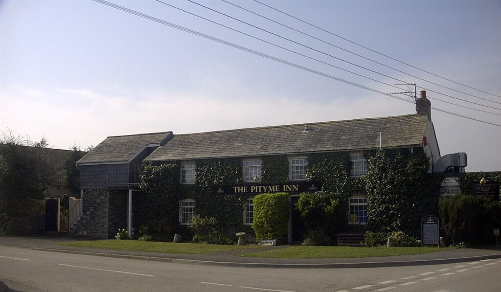Pityme is at the junction of the road from Wadebridge to Polzeath and the road from St Minver to Rock. It straddles the boundary between the civil parishes of St Minver Highlands and St Minver Lowlands. It is situated between Tredrizzick and Splatt although the villages form one contiguous settlement. The public house is the Pityme Inn and there is a small trading estate south of the village. The name of the village has its origins in a tragic tale of loss at sea. The skipper of a fishing vessel set to sea despite the deteriorating weather. All hands were lost. The women of the village went, as a group, to the widow of the captain to berate her for her husband’s culpability in their widowhood. She explained: “I have lost my husband too, so you should also pity me” – hence Pityme Inn. Another story refers to the sea having been closer to the village and is a corruption of the French expression petite mer (small sea). Similar tales are told of Pity Me in County Durham.