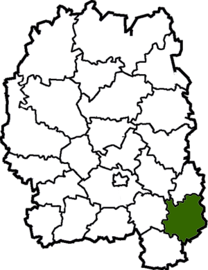 Popilnia Raion (Ukrainian: Попільнянський район) was a raion (district) of Zhytomyr Oblast, northern Ukraine. Its administrative centre was located at Popilnia. The raion covered an area of 1,037 square kilometres (400 sq mi). The raion was abolished on 18 July 2020 as part of the administrative reform of Ukraine, which reduced the number of raions of Zhytomyr Oblast to four. The area of Popilnia Raion was merged into Zhytomyr Raion.[1][2] The last estimate of the raion population was 30,106 (2020 est.)[3]